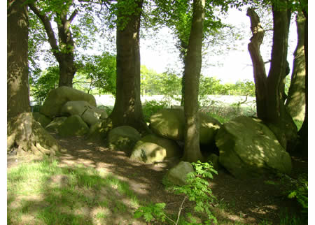 Im östlichen Teil des Düngels, in der Nähe von Vosloge und nicht leicht zu finden, liegt dieses schöne Steingrab im Wald versteckt. Ursprünglich war es eine Anlage mit 3 Decksteinen von denen aber nur noch einer in Position ist.